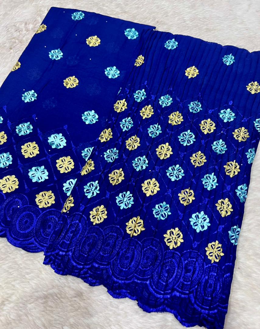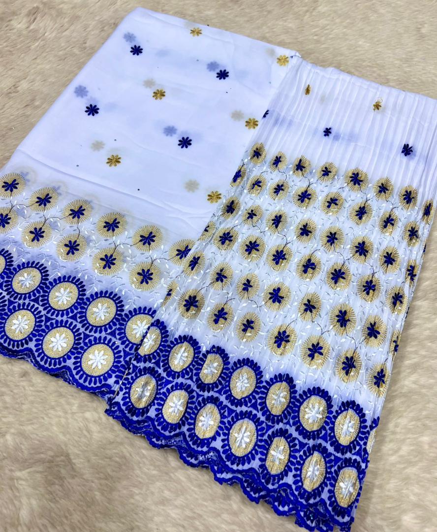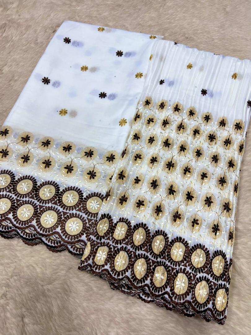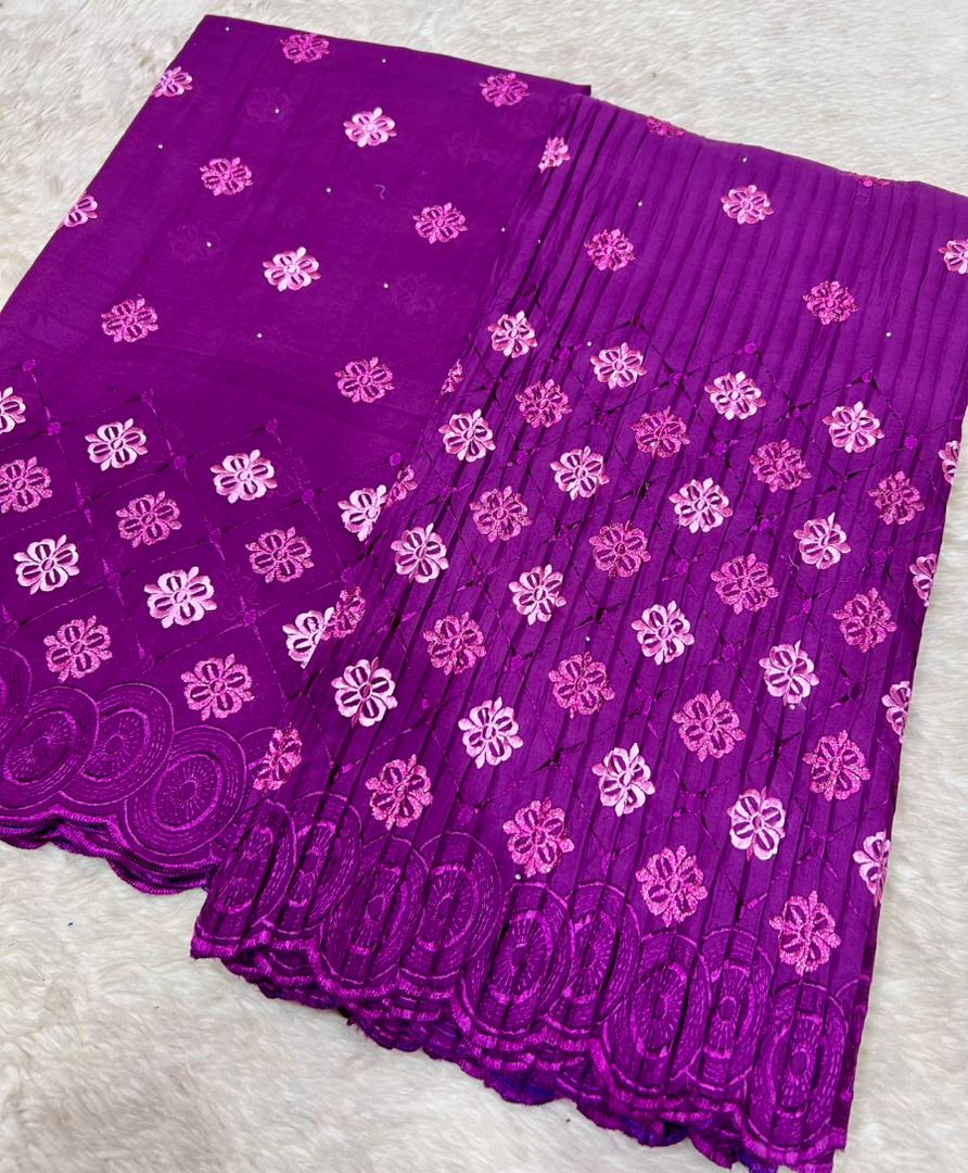 Le brodé Lafaya plissé est une dentelle richement brodée, fabriquée en coton ou en tissu mélangé, avec des motifs ajourés (petits trous décoratifs) qui donnent un effet élégant et raffiné.