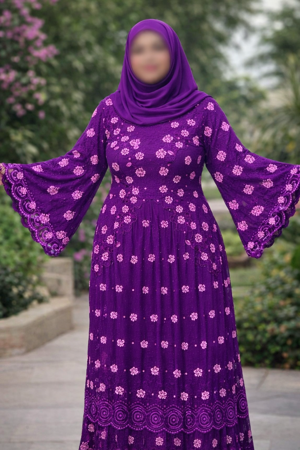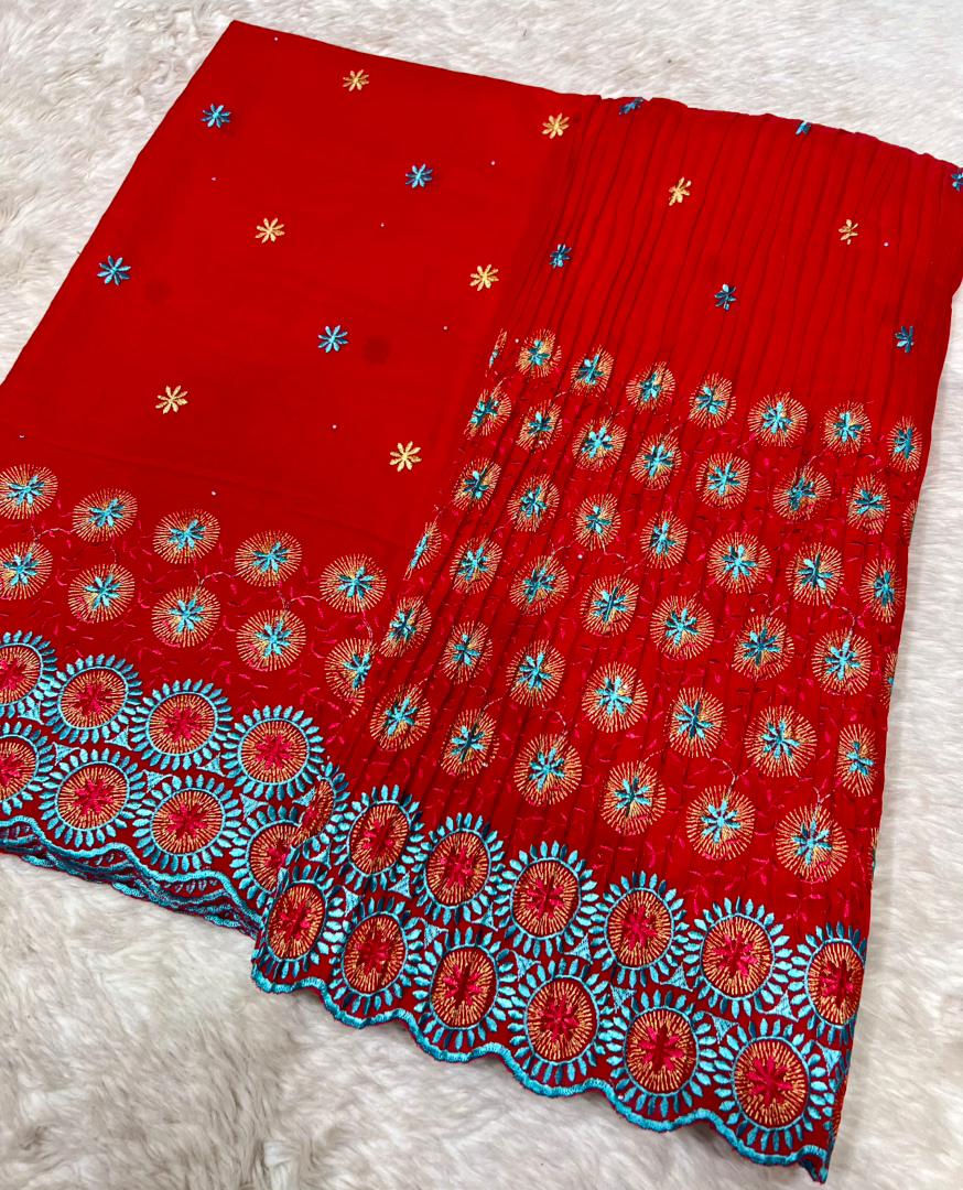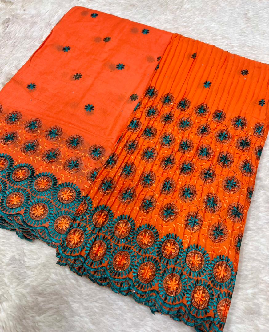 Le brodé Lafaya plissé est une dentelle richement brodée, fabriquée en coton ou en tissu mélangé, avec des motifs ajourés (petits trous décoratifs) qui donnent un effet élégant et raffiné.